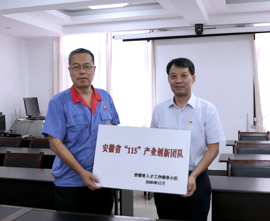 近日,安徽省人才工作領(lǐng)導(dǎo)小組辦公室下發(fā)第十三批“115”產(chǎn)業(yè)創(chuàng)新團(tuán)隊(duì)名單,此次評審全省僅評選出50個(gè)“115”產(chǎn)業(yè)創(chuàng)新團(tuán)隊(duì),公司TFT-LCD光學(xué)膜用PVA研發(fā)創(chuàng)新團(tuán)隊(duì)成功入選。9月28日下午,省國資委企業(yè)領(lǐng)導(dǎo)人員管理處處長金進(jìn)率隊(duì)來公司,為公司創(chuàng)新團(tuán)隊(duì)授牌。